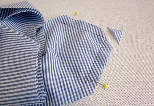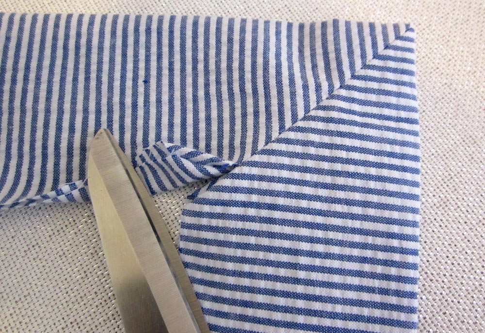 - Trim away the tip of the point, but be careful to not cut into your stitching.