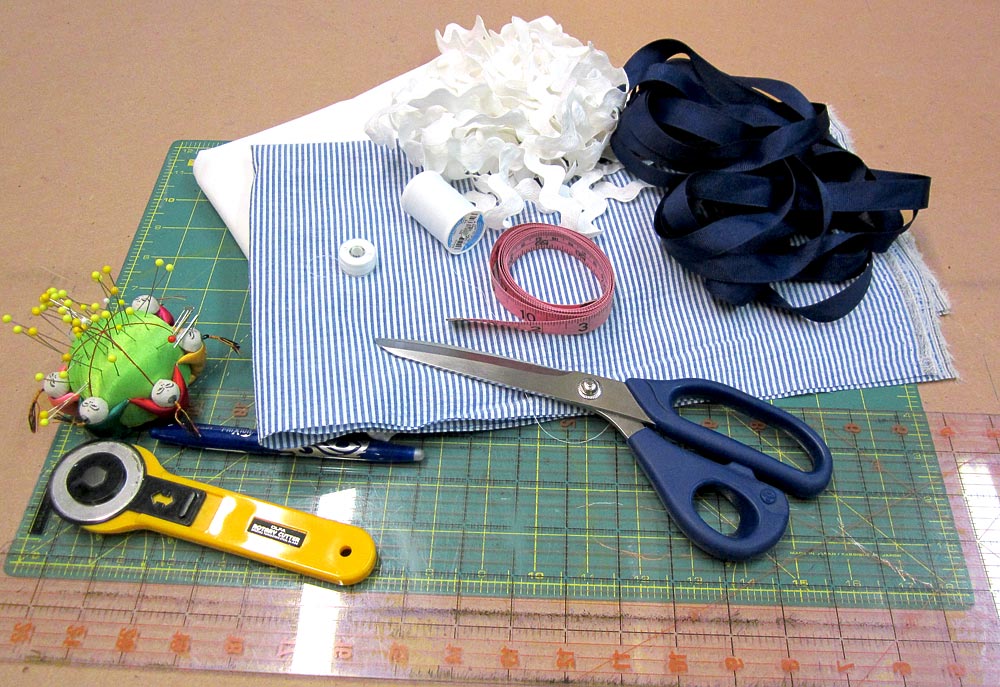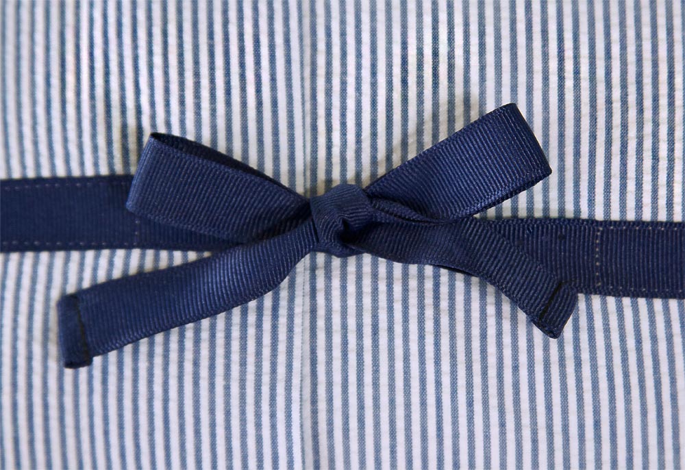 - 1¾ yards of 58″ wide seersucker; we used Kaufman’s Classic Seersucker Stripe – a real woven, heirloom quality seersucker from Fabric.com in Navy & White