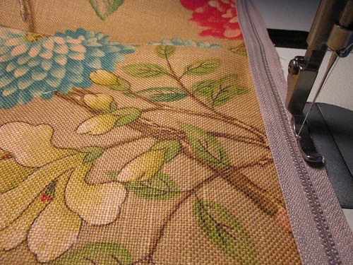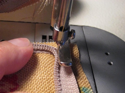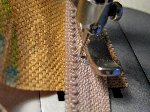 - Attach a Zipper foot, stitch the zipper in place along its entire length.