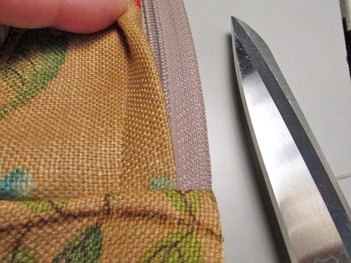 - Trim this bottom edge flush with the zipper tape.