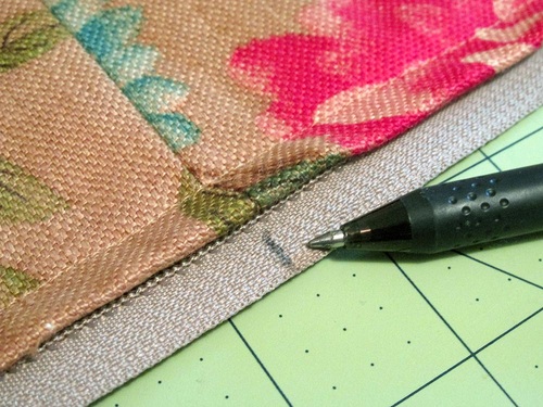 - Find the exterior loop. Along the zipper’s insertion tape, mark a guide line at each of the seams.
