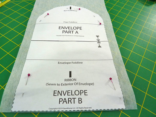 - Trim the pattern along the dotted stitch line. Use this trimmed pattern to cut ONE panel from the interfacing.