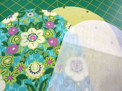 For the best finished look, we recommend starting with a larger than absolutely necessary piece of fabric for the exterior. This will allow you to plan a great fussy cut. Keep in mind when you are cutting that what starts as the bottom will fold up to become the front of the pocket and the top curve will fold down to become the flap. It can be a little mind-bending, but just go slowly and “test fold” prior to cutting. If you are brand new to fussy cutting, we have a full tutorial you can review prior to starting the project.