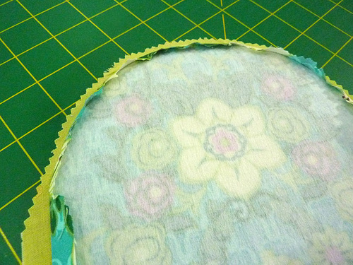 - Using the pinking shears, trim around the upper curve.