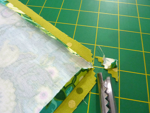 - Also use the pinking shears to cut the bottom corners on the diagonal.