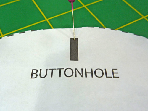 - Find the trimmed paper pattern. Use it to mark the upper position of the buttonhole.