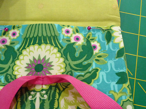 NOTE: Depending on the color difference between your exterior and lining fabrics, you may want to consider re-threading the machine prior to edgestitching around the flap.