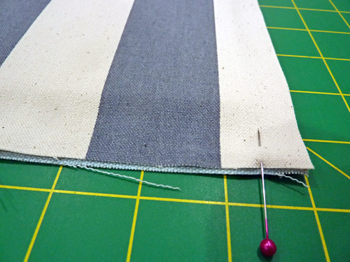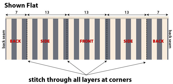 Our classic gray and white cabana stripe is a decorating standard that goes with everything. If you want the same look, it’s best to run your stripes vertically, which means you need a wide width décor weight fabric, such as a canvas or twill, for both the exterior and lining. Both layers are cut as one continuous 53” panel. There’s a helpful cutting diagram in the instructions below.