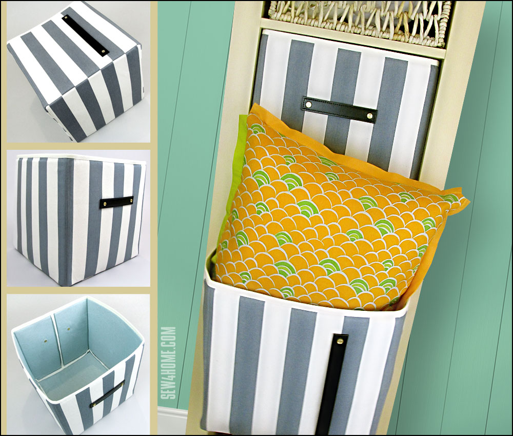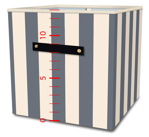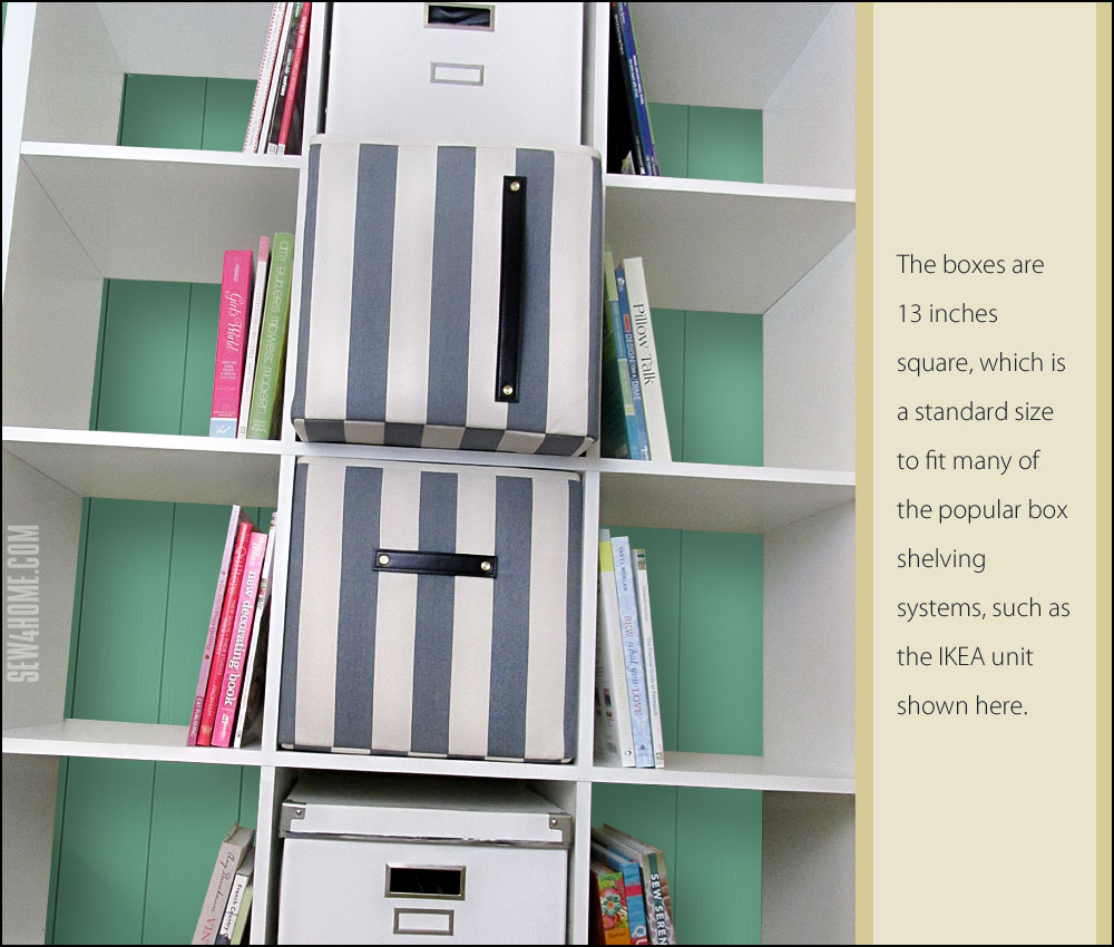 Our Fabric Boxes with Handles finish at approximately 13” square, which is a standard size to fit many of the popular box shelving systems, such as the Ikea units shown in the photos above.