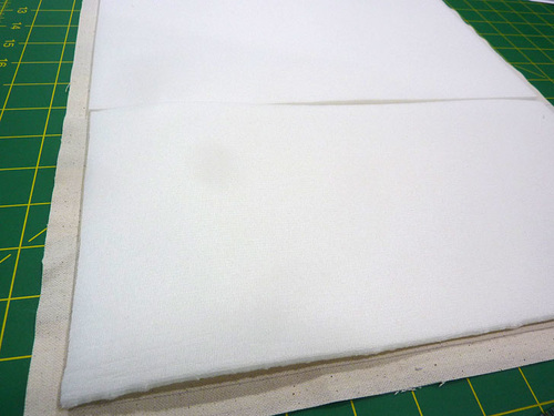 - Layer the fused exterior base panel and the lining base panel wrong sides together. Make sure the raw edges of both the exterior panel and the lining panel are flush on all sides and the layers are smooth, then fuse again to activate the second side of the fusible foam.
