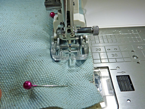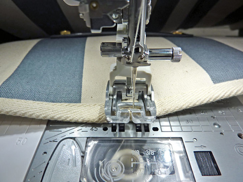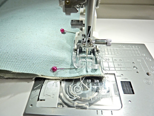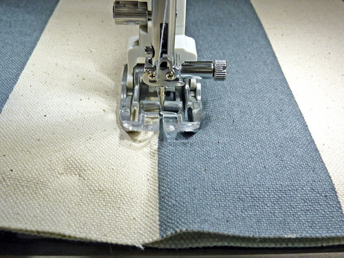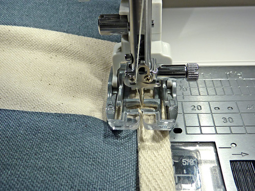 - Thread the machine with thread to best match the exterior fabric in the top and to best match the lining fabric in the bobbin. Slightly lengthen the stitch.