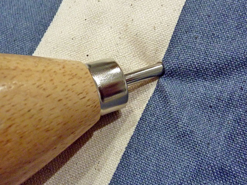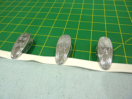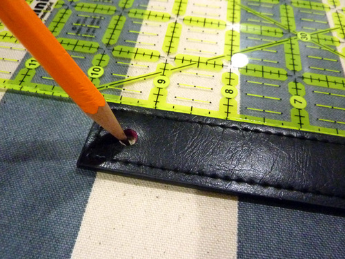 - Use the drilled holes in the handle to mark the placement on the fabric.
