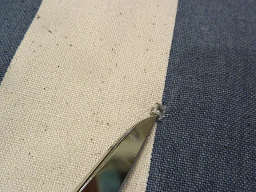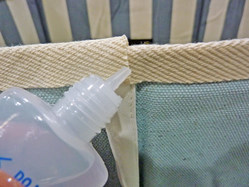 - Add a drop of seam sealant to prevent raveling, making sure to let it dry.