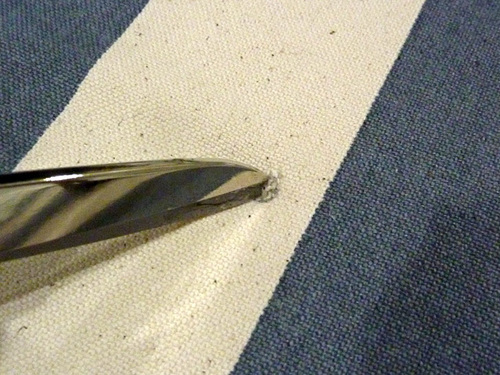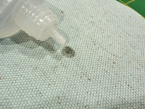 - Place a drop of seam sealant around the holes to prevent raveling. Allow it to dry.