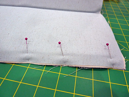 - Re-set, re-pin, and then stitch the next side of the base panel in the same manner.