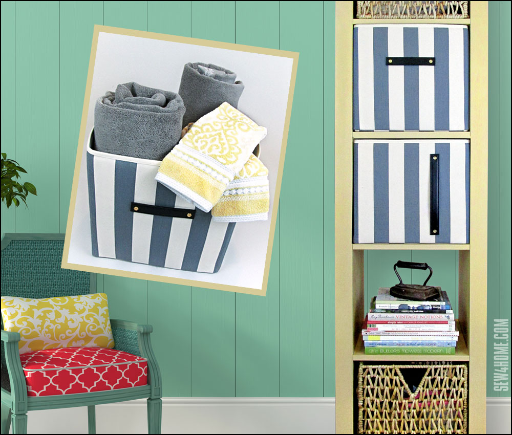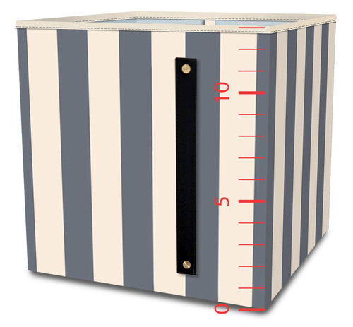 - ⅞ yard of 54”+ wide mid-weight canvas, twill or similar in a vertical stripe or other bold print for the box exterior; such as this gray and white strip from Premier Prints