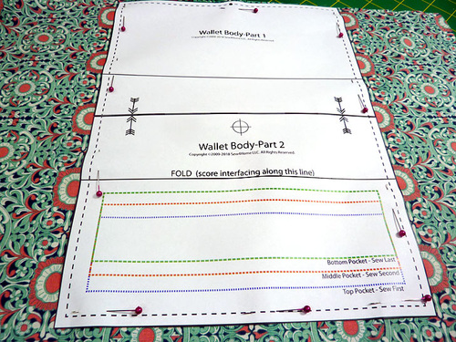 - The Wallet Body pattern has helpful color-coded lines for the placement of each pocket. You can transfer these lines to your fabric panel with a fabric pen or pencil or you can simply measure the distances and use your ruler to confirm placement.