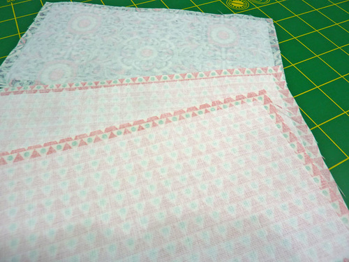 NOTE: We recommend a dominant pattern for what will become the exterior (as well as some interior panels), like the beautiful floral medallions we chose; then select a coordinating petite pattern, like the tiny triangles we chose, for what will be the main interior (as well as some other panel accents). - ⅓ yard of 20″+ wide lightweight fusible interfacing; we used Pellon Shape Flex
