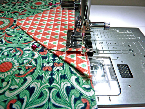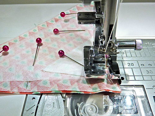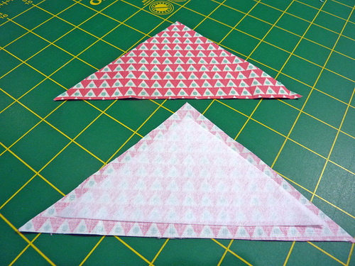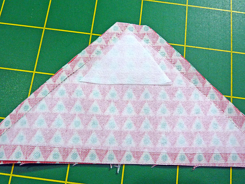 - Using a ¼” seam allowance, stitch the two angled sides, making a sharp pivot at the point of the triangle.