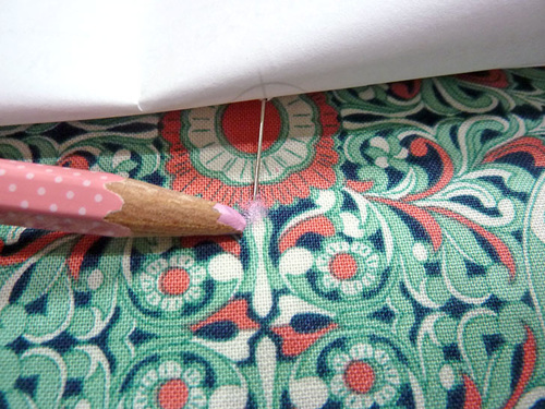 - Transfer the pin point to the fabric panel with a mark from a fabric pen or pencil.