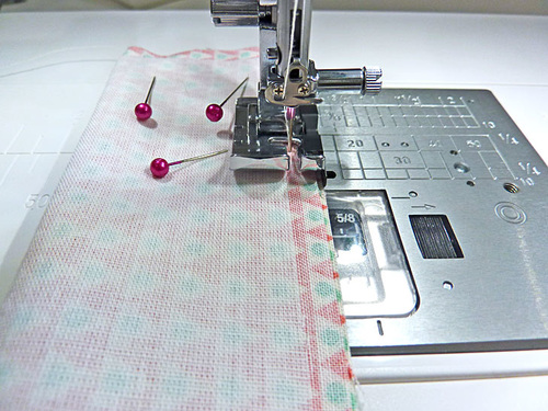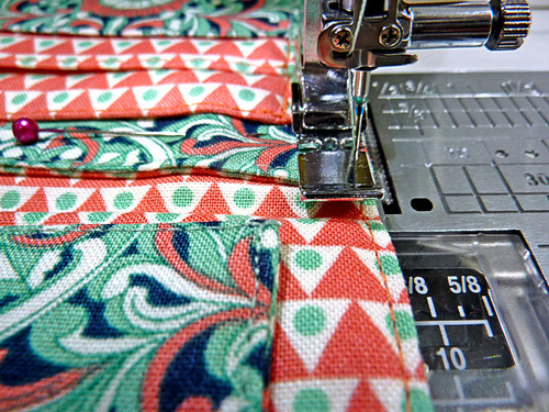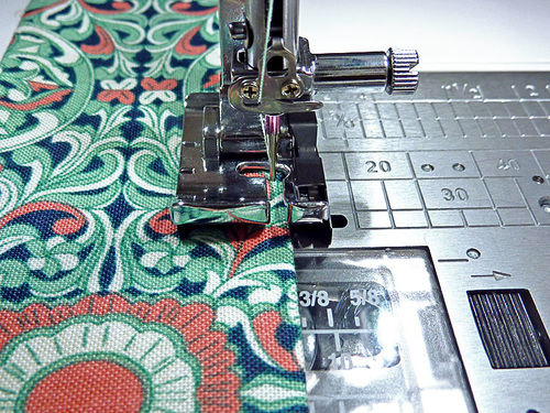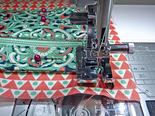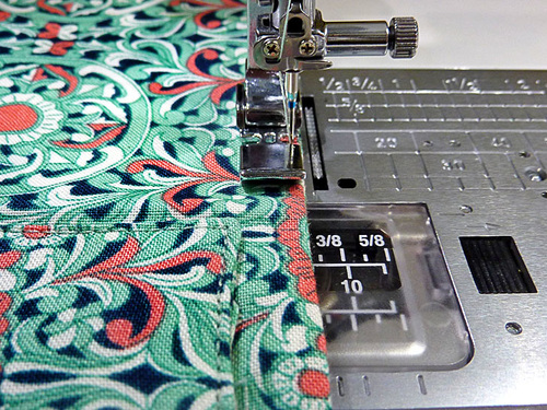 NOTE: We continued to use our Quarter Inch Seam foot, stitching with the guide slightly off to the side as this is not a ¼” seam; it is an edgestitch, which should be approximately ⅛” from the pocket’s edge.