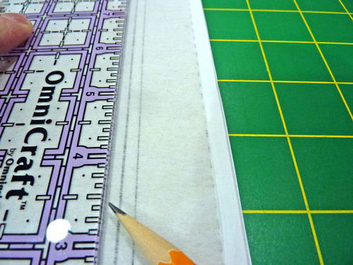 - Measure and draw a vertical line, using a fabric pen or pencil, down the exact center of the three-pocket tier.