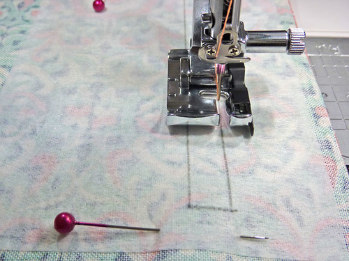 - Switch back to a Quarter Inch Seam foot and using a ¼” seam allowance, stitch along both sides and across the top, pivoting at the corners.