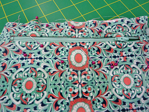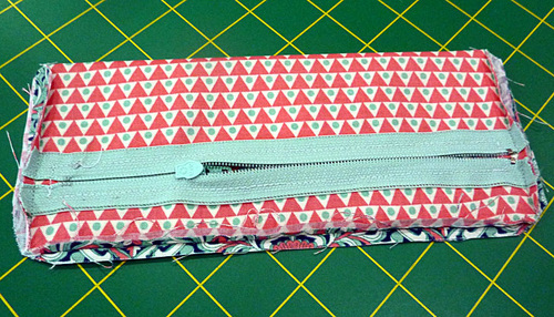 - Turn right side out through the open zipper. Push out the corners so they are nice and sharp. A chopstick, long knitting needle or point turner works well for this. Press flat.