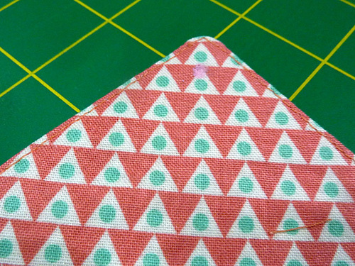 - Clip the corners and turn the pocket right side out through the opening. Push out the corners so they are nice and sharp. A chopstick, long knitting needle or point turner works well for this. Fold in the raw edges of the opening so they are flush with the sewn seam. Press flat.