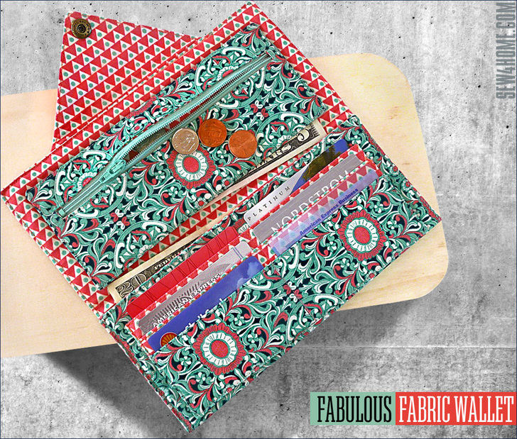 This Fabulous Fabric Wallet finishes at 8½” wide x 4” high when closed and 8½” wide x 8” high when open.