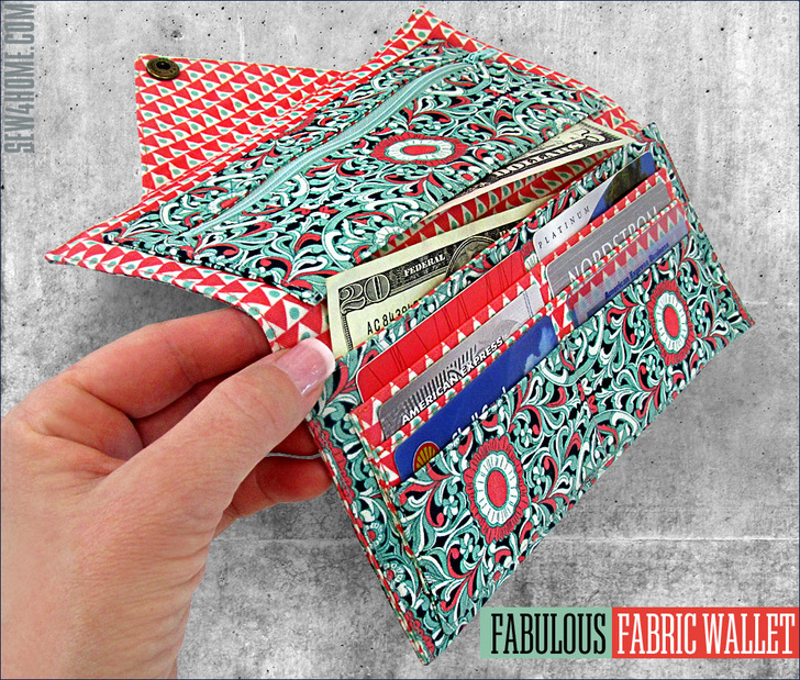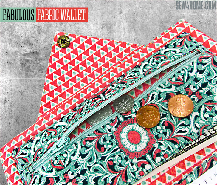 I’m privileged to have my dad’s wallet. It’s a wide fold-over style in soft brown leather with several pockets; his name is embossed in gold along the top of one of them. I can remember him pulling a coin out of it to give to me to buy a special treat. Even with all the digital options out there for transacting purchases on your smart phone, I still like to carry a wallet. Although leather is traditional, today’s wallets come in all shape, sizes, and substrates. We’ve created ours in a pair of gorgeous quilting cottons with lots of fully-finished pockets and a zippered coin pocket in case you come across a treat you need. Although, it’s likely to take more than just one coin these days!