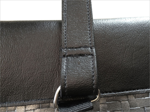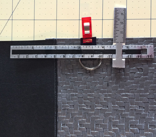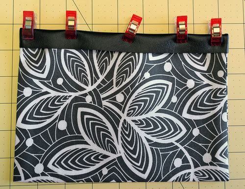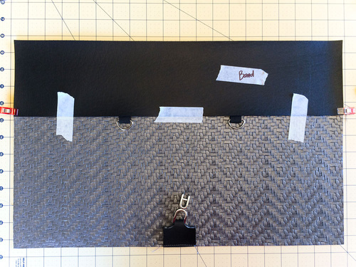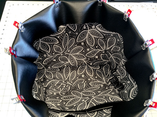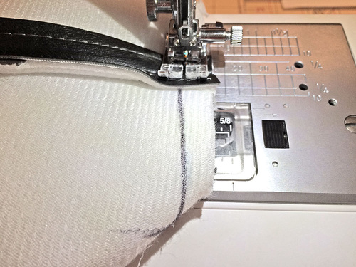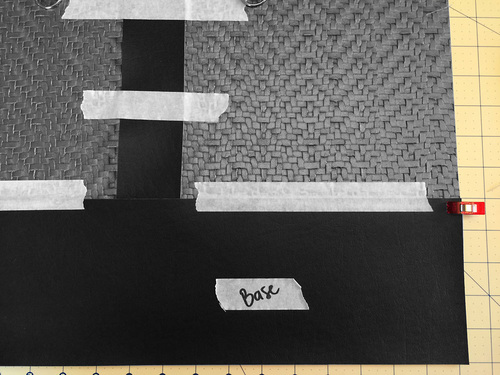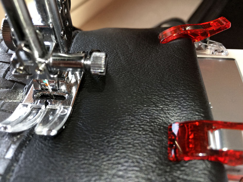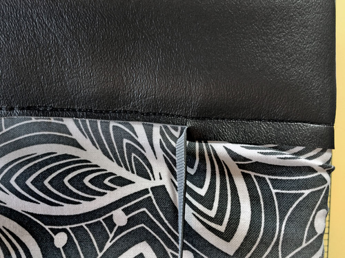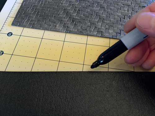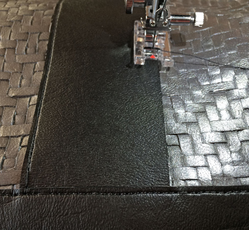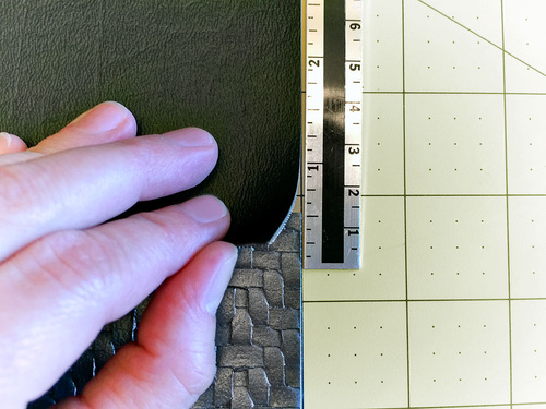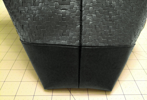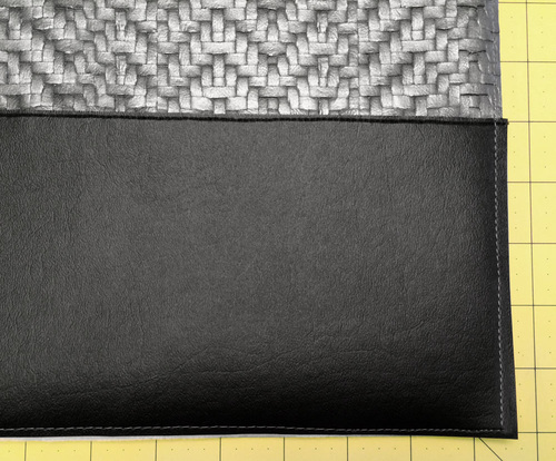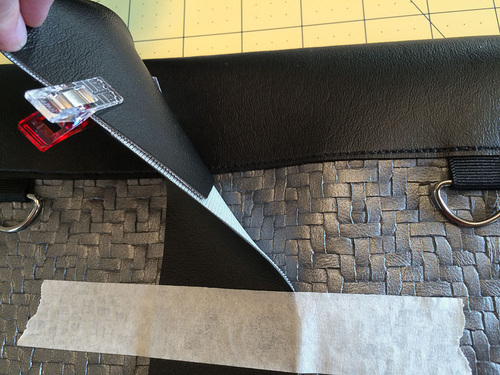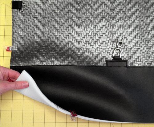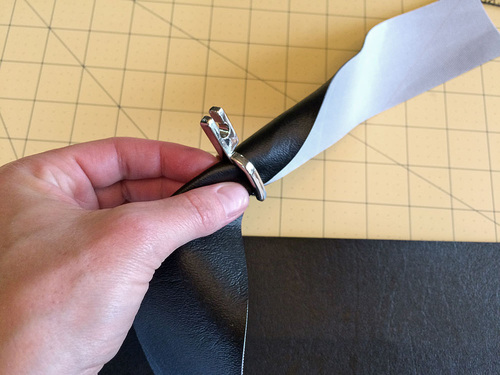 Vinyl based faux leathers are much thicker than the micro-suedes and other lightweight leather-like fabrics generally used for garment construction. Because of this, it’s always important to keep layers to a minimum. For this bag, we used flat cut layers whenever possible. These raw cut edges can be touched up with a permanent marker to create a clean finish.