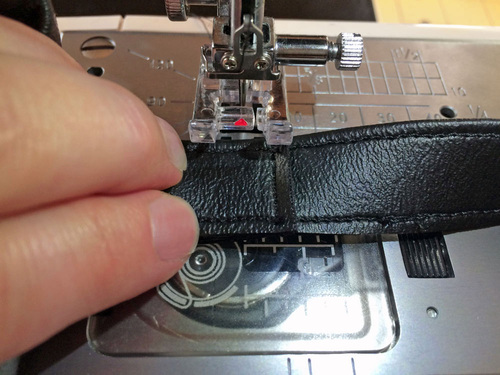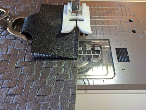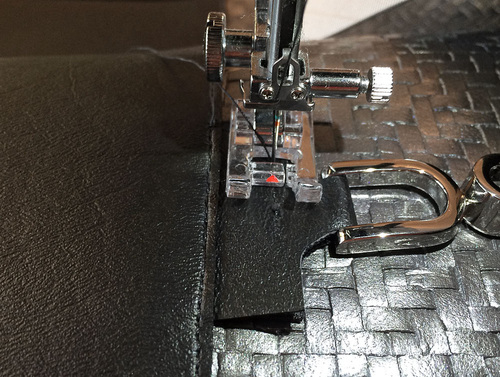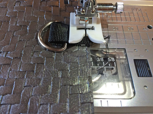 - Again, you could switch to a Zipper foot if need be in order to pass above the D-rings with a nice, straight line of topstitching.