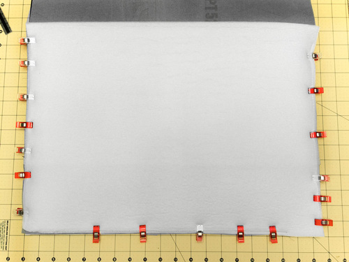 - Find the two foam panels. Clip one panel to the wrong side of each exterior panel. Align the side edges and the bottom edges. The top accent band should extend 2½” beyond the foam at the top edge.