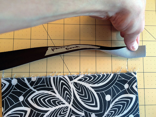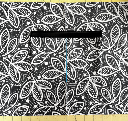 - Following manufacturer’s instructions, fuse the interfacing to the wrong side of one half of the pocket panel.