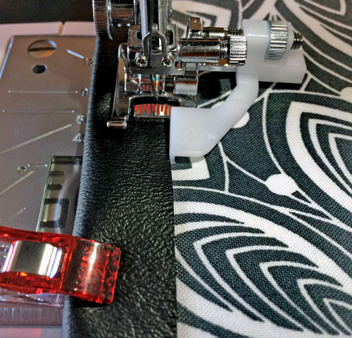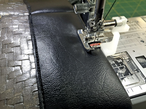 NOTE: We are using the Janome UltraGlide foot, which is helpful when stitching on the right side of the vinyl.