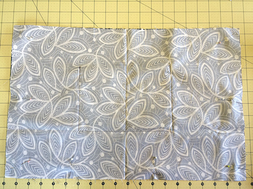 ONE 9″ wide x 11″ high rectangle for the pocket; we fussy cut our pocket for an exact match against the lining panel. - From the foam interfacing, cut TWO 19½” x 14″ panels.