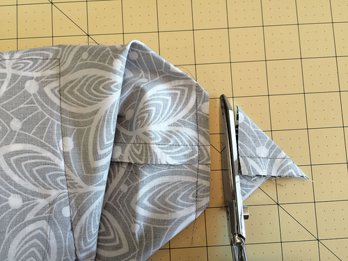 - Flatten and double stitch the corners, using a ½” seam allowance or stitching along your drawn guideline.