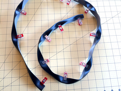 - Machine baste each ribbon loop in place.
