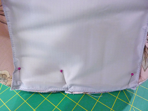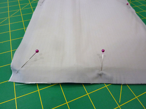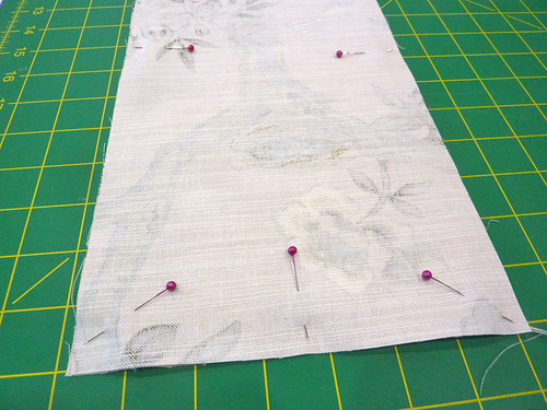 - Fold up the bottom 6” to form the pocket. Pin along each 6” side.