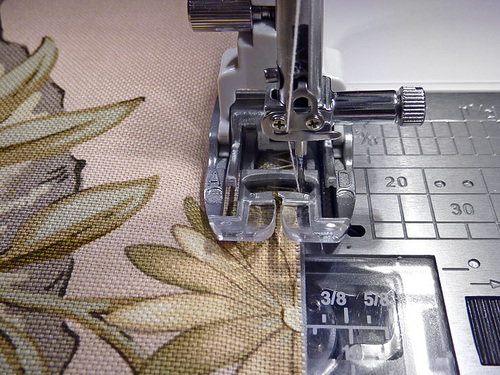 - If necessary, re-thread the machine with thread to best match the bias binding tape in the top and bobbin. Slightly lengthen the stitch. If possible move your needle position to the left.