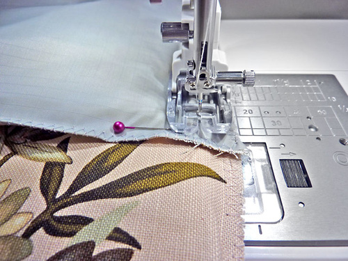 - Using a ½” seam allowance, stitch both side seams. You should be stitching right along, but not on, the edge of the foam panels.