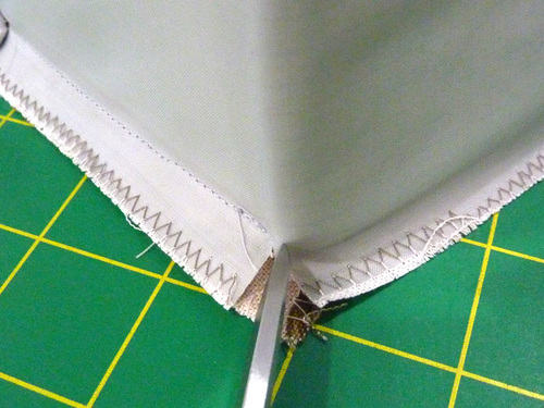 - In order to create the flattest base possible, clip into each corner of the tube. Snip into the corner at a diagonal at a depth of about ⅜“. You are clipping right up to but not through your stitching line.