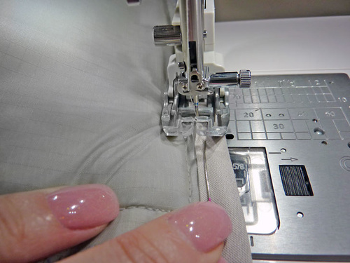 - If necessary, re-thread the machine with thread to best match the lining in the top and bobbin. Re-set the stitch length to normal. We are still using our AcuFeed™ Flex fabric feeding system.