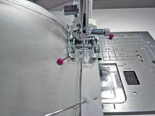 - If necessary, re-thread the machine with thread to best match the binding tape in the top and bobbin. Slightly lengthen the stitch.