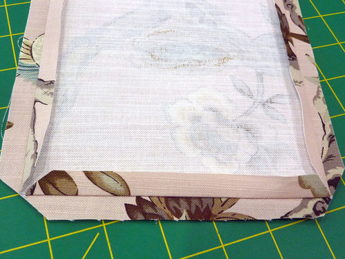 - Edgestitch around all four sides through all the layers, going slowly and carefully to insure you are catching both sides of the tape wrapping the seam allowance.