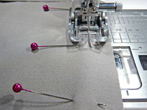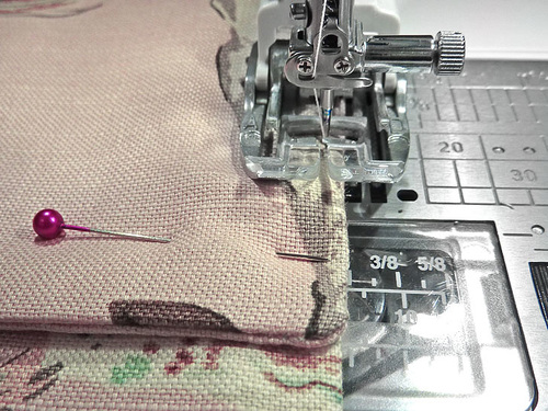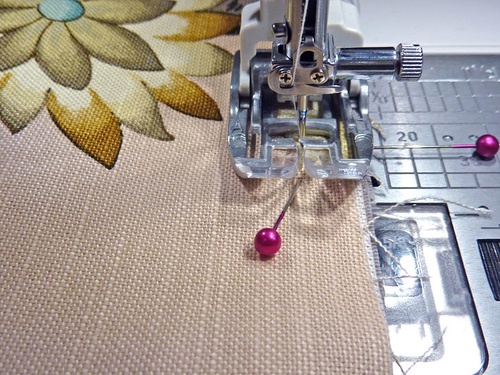 - With the outer pin point as your guide, start your seam ½” in. You are using a ½” seam allowance.