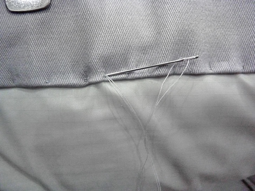 - Thread the hand sewing needle with thread to best match the accent band and carefully slip stitch the band in place all around. Again, the best way to think of this is as a facing. Make your stitches tiny and precise as they are running along the inside of the bag and might be slightly visible.