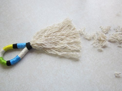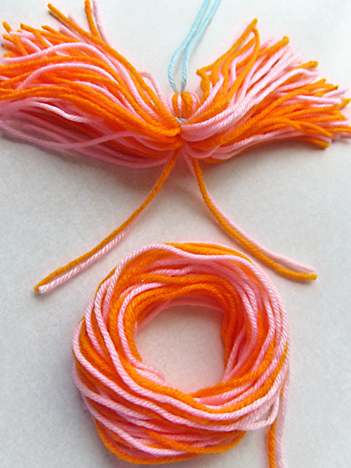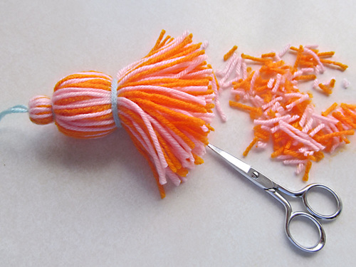 - Trim the yarn strands to an even length; we made our tassels about 4½”.