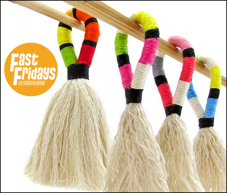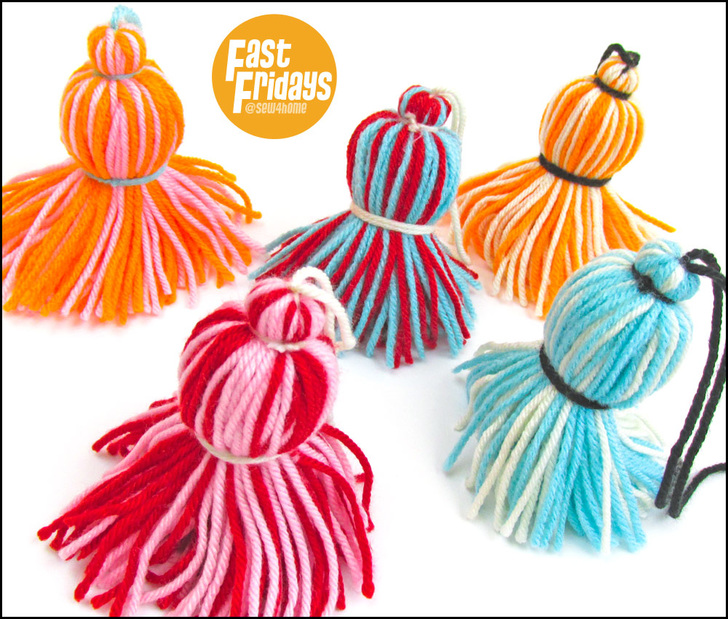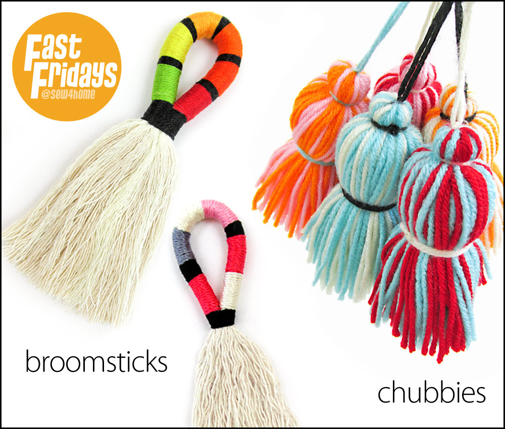 We use traditional tassels often as a fun embellishment for linens, cushions, bags, and more. But in true Sew4Home fashion, we weren’t content to settle for traditional. So we have two unique tassel styles for you: the Broomstick Tassel with a sleek, floss-wrapped hanging loop, and the fantastical Yarn Chubbies, which we think look like fluffy little dancing dolls. It’s all part of our Fast Fridays series that is all about whipping up something wonderful in no time at all.